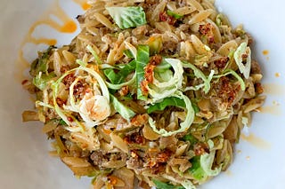 Creamy Sausage and Shaved Brussels Sprout Orzo
